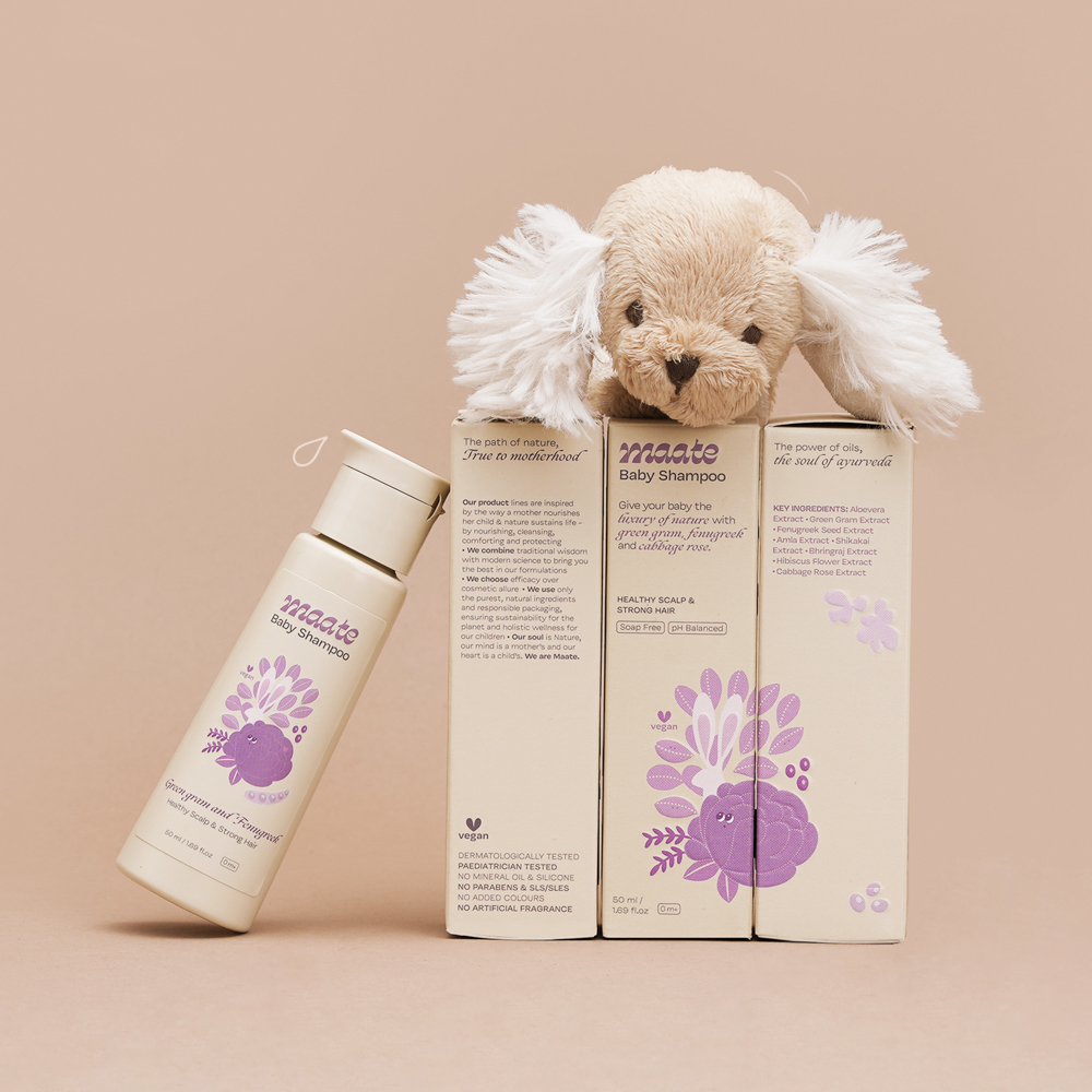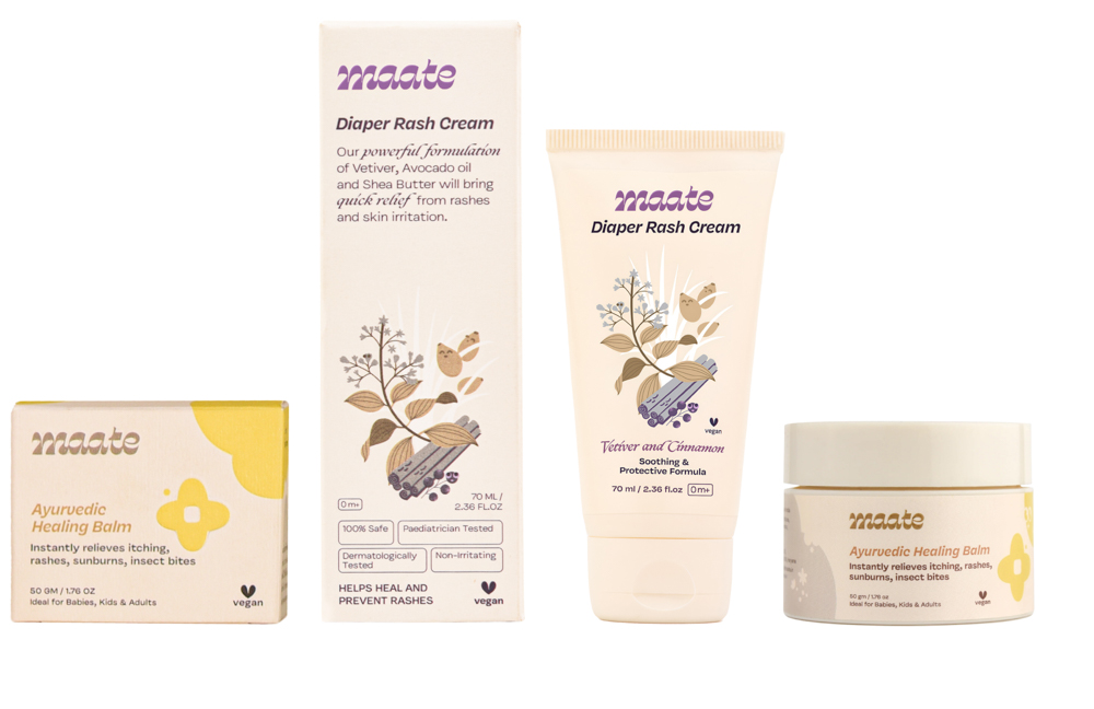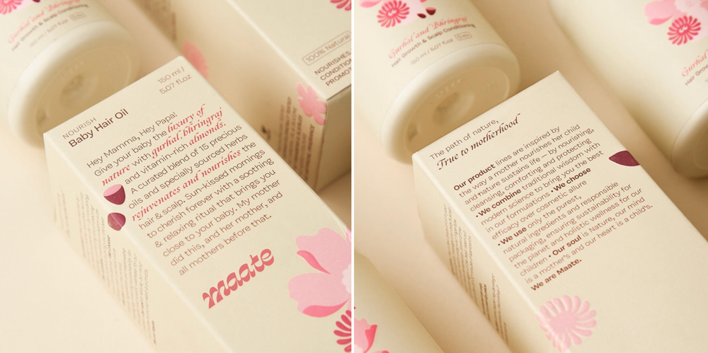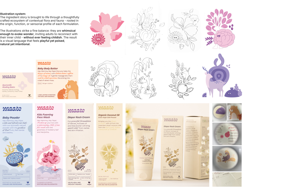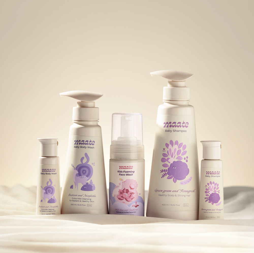 Maate is a premium Indian baby and mom wellness brand that combines ancient wisdom with modern science. Its packaging design reflects the brand’s ethos, natural, nurturing, and efficacious. With key offerings in baby skincare and wellness rooted in indigenous rituals, the design balances purity with sophistication, creating a visual identity that speaks of trust, care, and timeless tradition while appealing to today’s discerning parents.